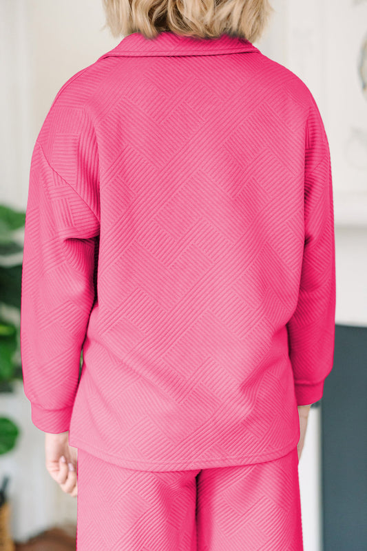 Talia – Solid Textured Collared V-Neck Top and Wide Leg Pants Set